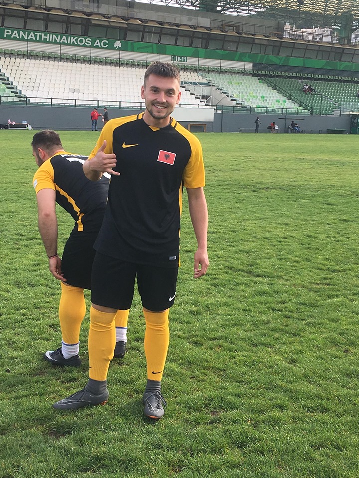Praktikisht flitet për vetmin ekip shqiptar në Greqi, që nuk bën asnjëherë kompromis me shpalosjen e simboleve kombëtare. Siç mund ta dalloni lehtësisht në foto, flamuri i Shqipërisë është ai përfaqësuesi dhe që valvitet në një vend ku nuk e shohin me shumë dashuri. “Shqiperia.ch” ka kontaktuar edhe me Benard Veliun, gjithë ideatorin, i cili na shprehet: “Ka qënë shumë e vështirë për ne në vitet e fillimit, pasi duhej të fitonim gjyqtarët, jo vetëm ekipin kundërshtar.