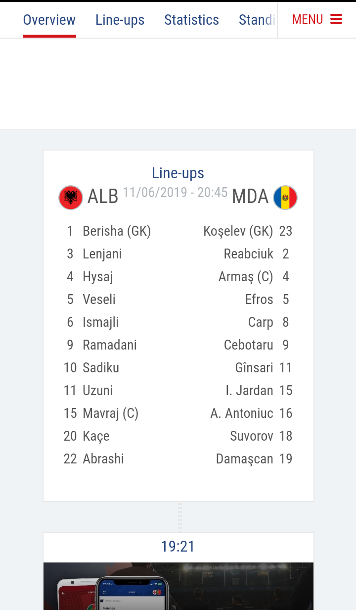 Ndërkohë vetëm para pak minutash janë publikuar formacionet zyrtare nga “UEFA”, që mund t’i shihni më poshtë: